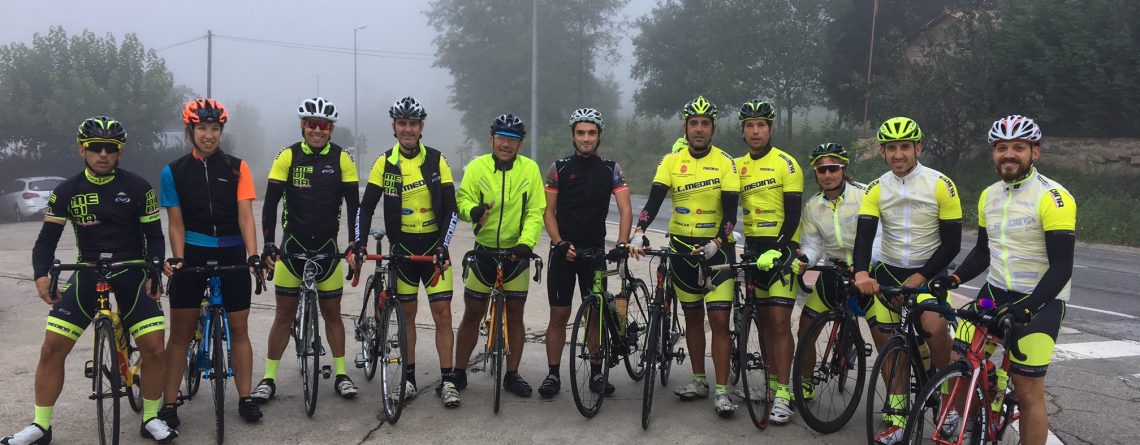 Andy, Rubiales, Kiko, Sebas, Miguel, Isma, Manuel, Manel, Jordi, La amiga de Jordi y un servidor. La mañana fría, densa niebla y mucha humedad nos hace abrigarnos , quizá más de lo debido, ya que lo que nos espera nada mas salir es el ascenso al primer puerto del día.